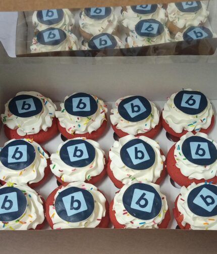 A 12pcs cupcakes themed with a company logo. The flavour is a mix of vanilla, chocolate and red velvet. Order by 3pm for next day delivery.