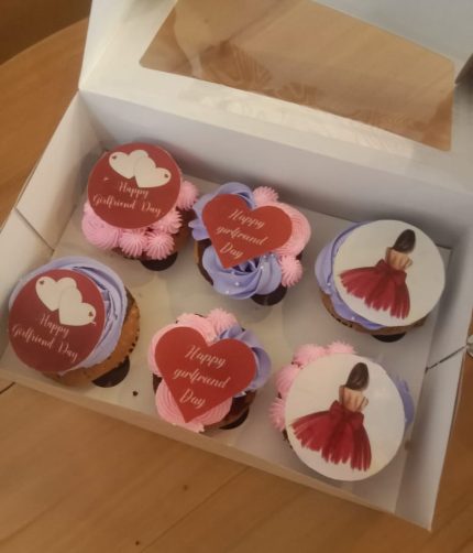 A perfect way to send Girlfriend’s day greetings and love with themed cupcakes. The cupcakes flavour is chocolate vanilla. Order by 2pm for same day delivery.