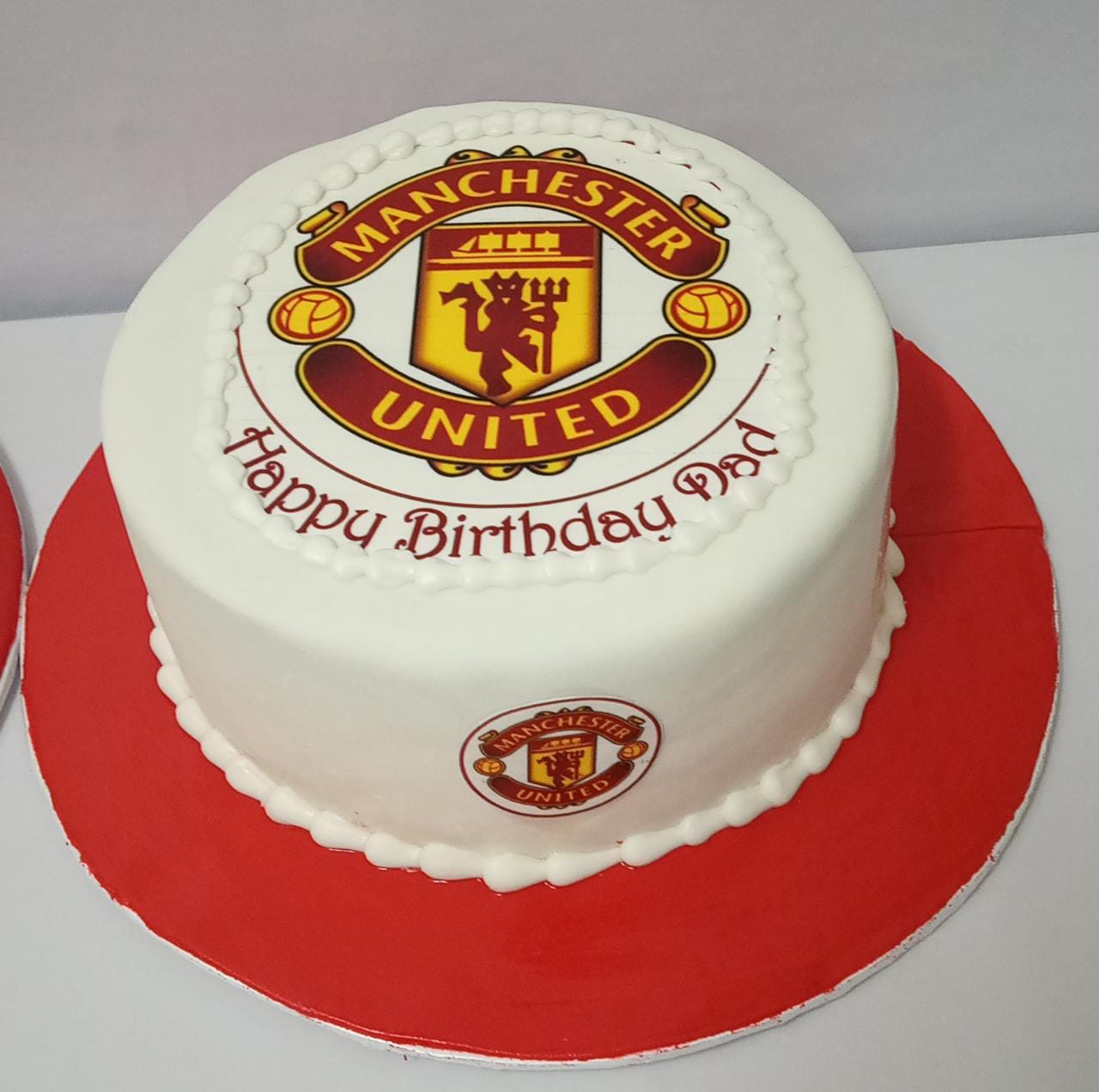 A football club themed fondant cake for the fan. The cake flavour is a mix of chocolate and vanilla. Order by 3pm for same day delivery.