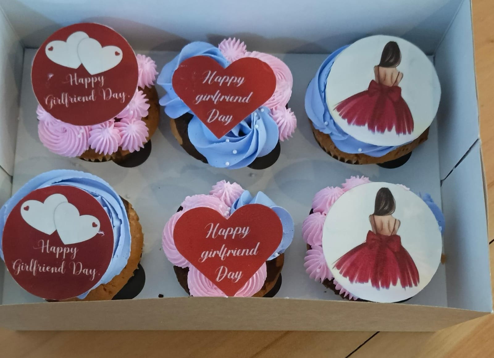 A perfect way to send Girlfriend’s day greetings and love with themed cupcakes. The cupcakes flavour is chocolate vanilla. Order by 2pm for same day delivery.