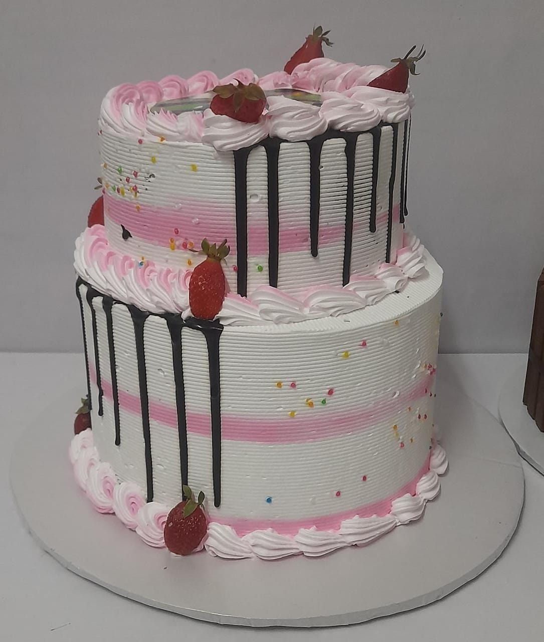 A tiered cake with touches of pink themed to impress the young queen. The cake flavour is a mix of strawberry, vanilla and chocolate. Share the queen’s photos on WhatsApp. The minimum size is 2.5kg for this design. This cake is available for next day delivery.