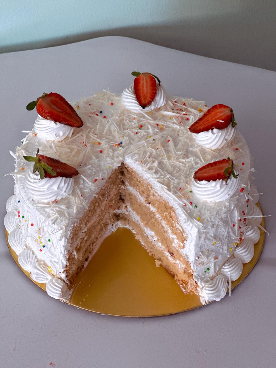 A freshly baked and caramel frosted vanilla firm cake with fresh cream. Order by 4pm for same day delivery.